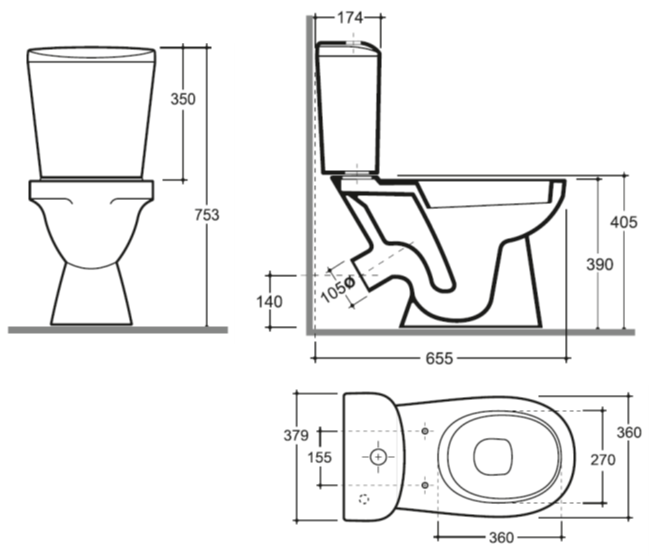 Tip Evacuare Vas WC 45 gr